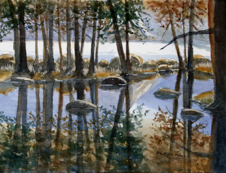 Winter snow melt created a backwater pond at lake Tanaya, in the background.