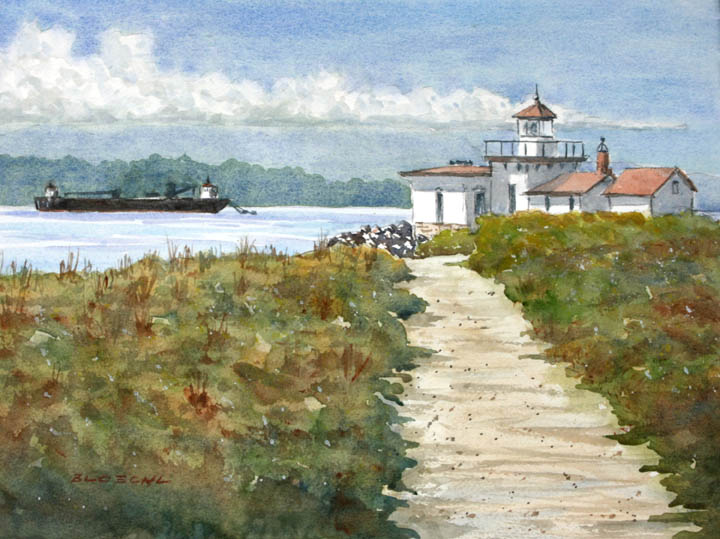 I took of the west point lighthouse, with a cargomship anchored
